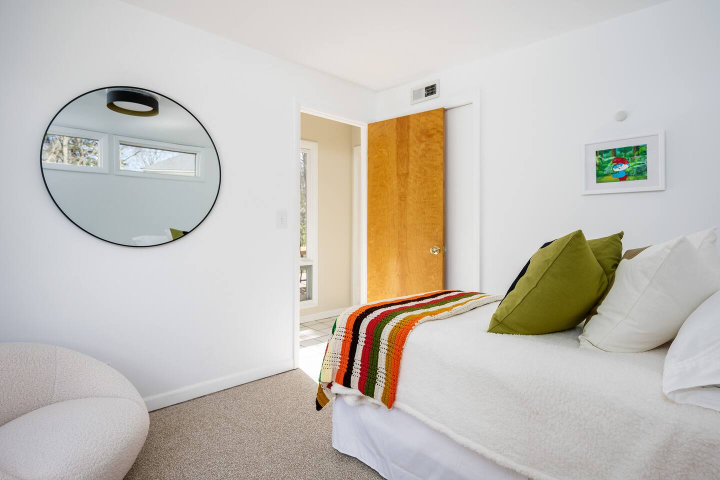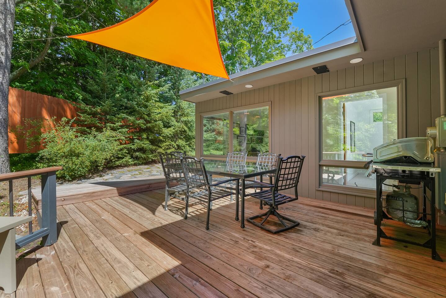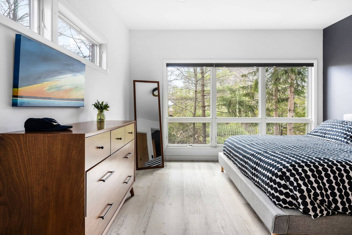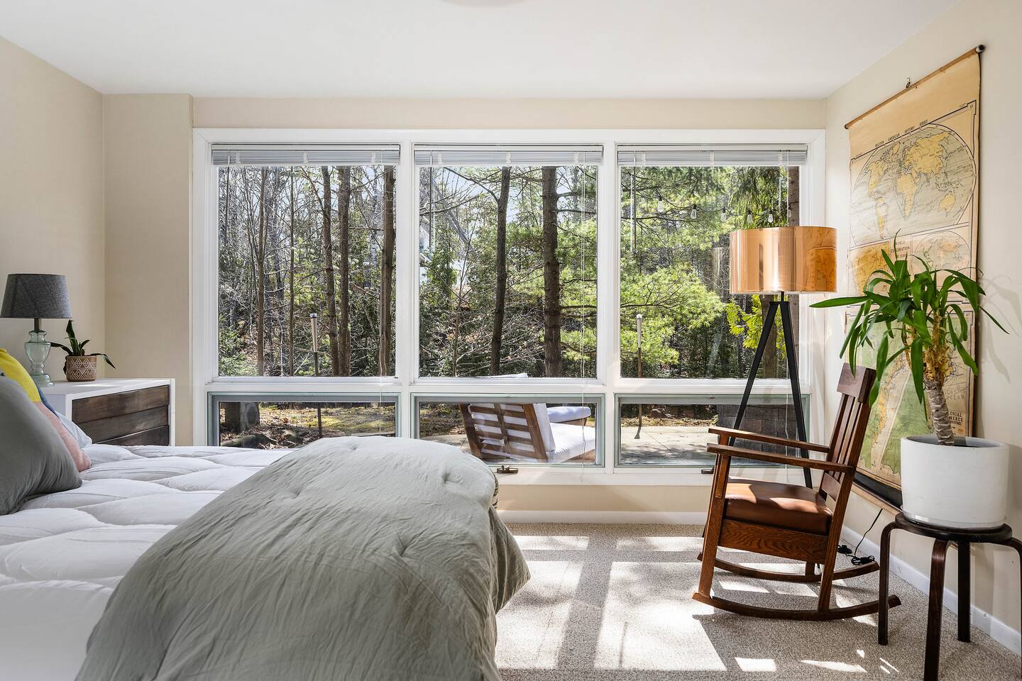 Nestled on the banks of the historic Mill Pond, the home embraces true mid-century design with clean lines, floor-to-ceiling windows, and an open concept living space that brings the outdoors in. Original wood beams, stone fireplace, and period furnishings create the perfect backdrop for your northern Michigan getaway. The large patio and wraparound deck allows you to entertain amongst the lush tree canopy, peaceful water, and sounds of nature including blue herons, turtles, otters, and hummingbirds. The sunlit living area opens to a spacious deck where you can enjoy morning coffee while watching birds glide across the pond. Evenings are magical as the water reflects the changing sky – perfect for sharing stories and a glass of local wine. Two livings rooms create comfortable spaces to read or watch a show after a long day exploring the offerings of the Leelanau Pensinula. SLEEPING ARRANGEMENTS Master bedroom: King bed with on en-suite bathroom. Bathroom has heated floors and triple shower heads Second bedroom: Queen with cozy reading nook Third bedroom: Twin day bed Fourth bedroom: Queen bed with full wall views of the mill pond THE LOCATION Our Mill Pond retreat sits in a quiet neighborhood just two blocks from Northport's charming downtown. You're perfectly positioned to explore all that Leelanau Peninsula has to offer: 3-minute walk to Northport Marina and beach 5-minute walk to local shops, restaurants, and coffee 10-minute drive to wineries and hiking trails 15 minutes to Leland's historic Fishtown 30 minutes to Sleeping Bear Dunes National Lakeshore 30 minutes to Traverse City M22, Michigan's scenic coastal highway, is just steps away – your gateway to endless adventures along the shoreline. THE DETAILS Free parking onsite Fully equipped kitchen with coffee maker, microwave, and all essentials Outdoor patio with bistro lights and a fire pit Washer and dryer for your convenience Smart TV in main floor and basement living rooms Come experience the perfect blend of mid-century style and northern Michigan charm. The Mill Pond awaits!