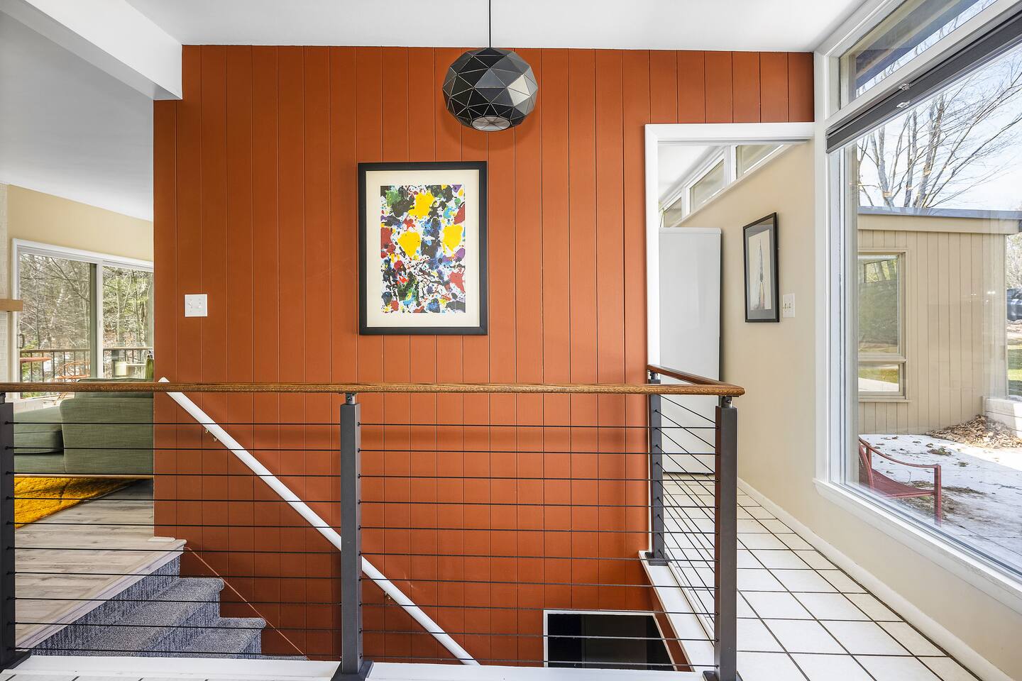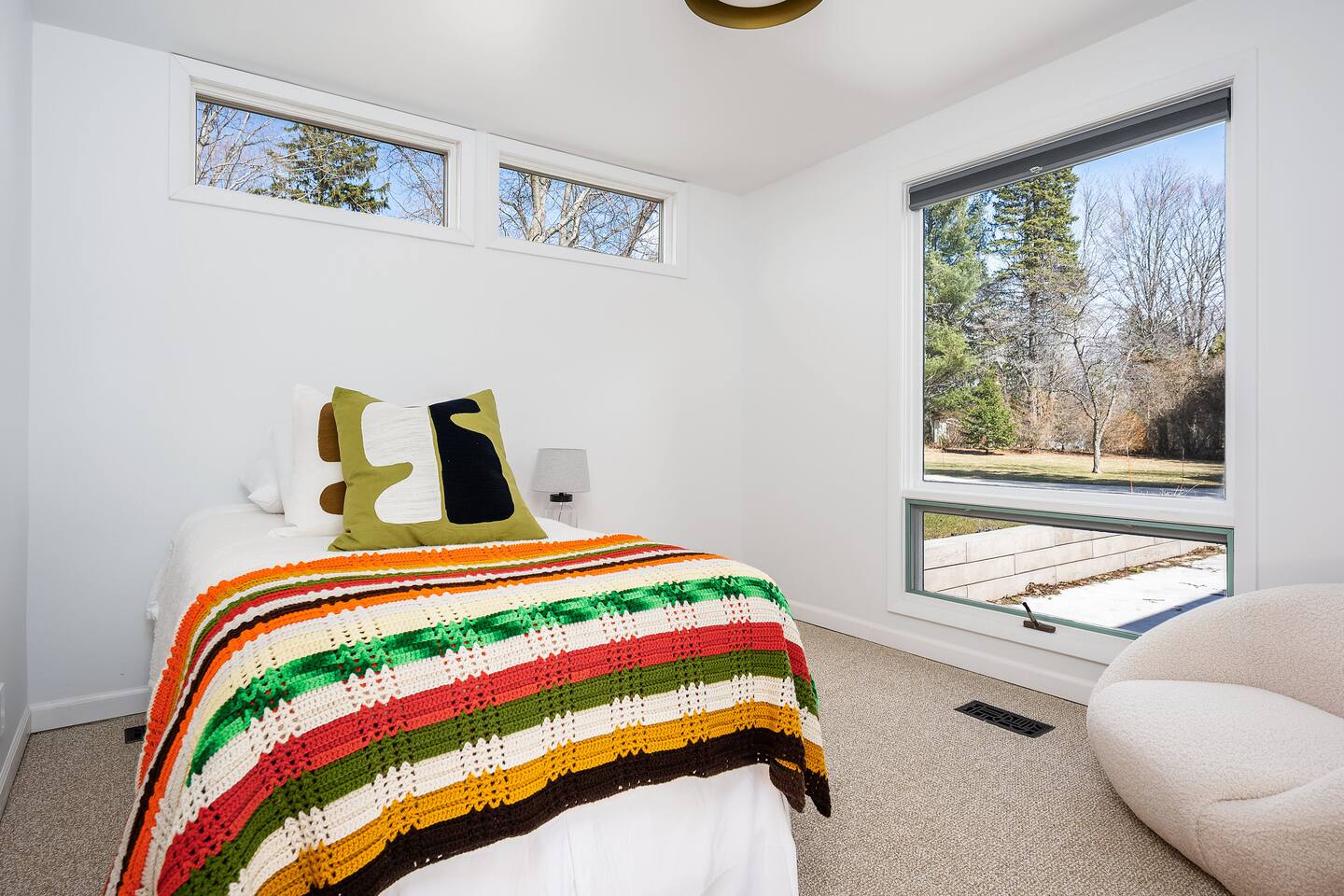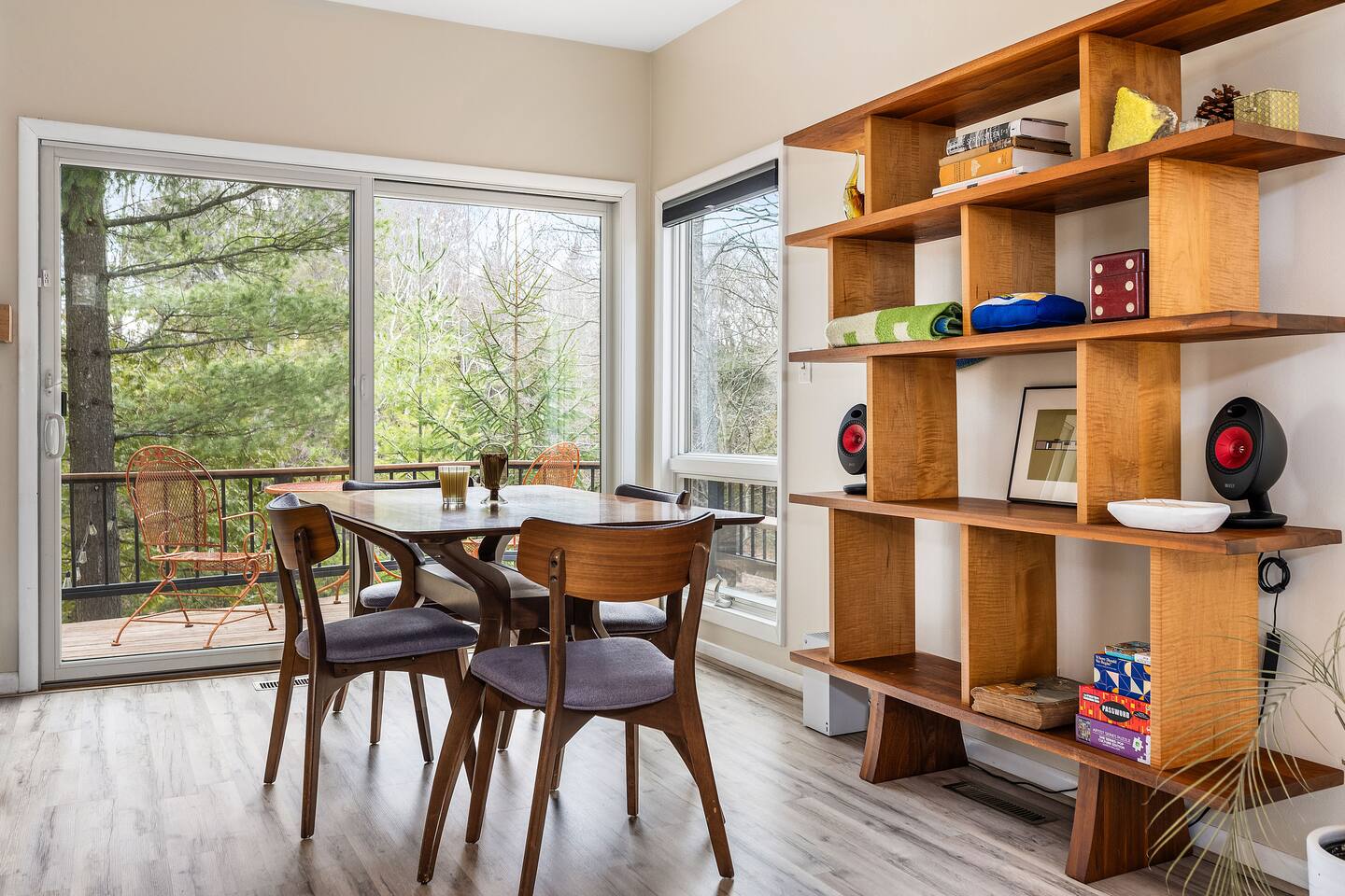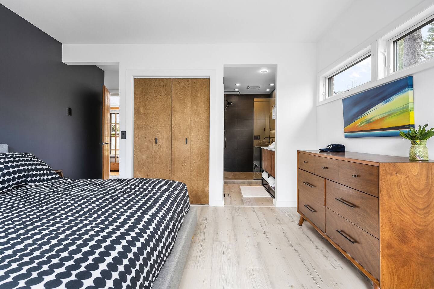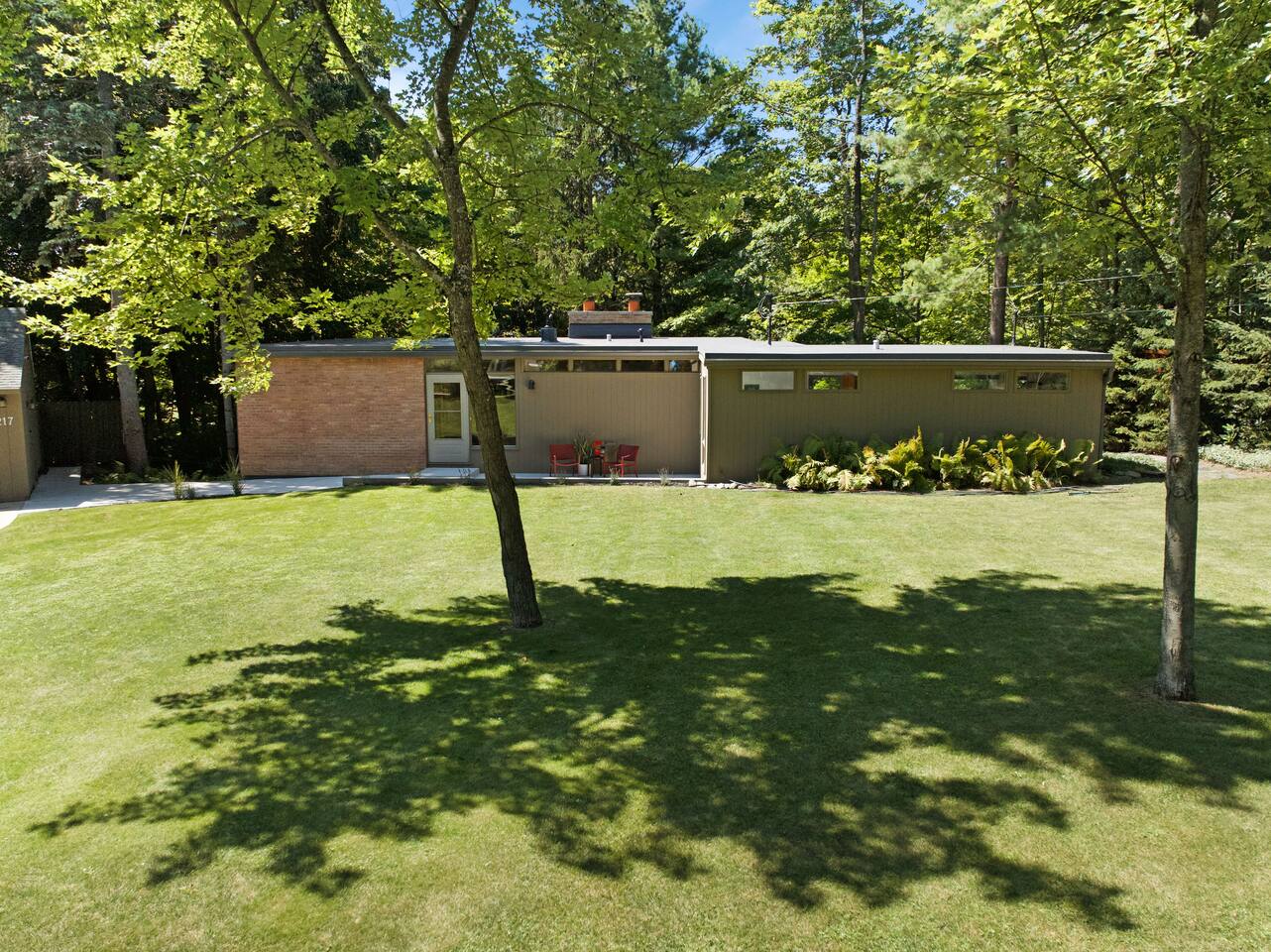 Nestled on the banks of the historic Mill Pond, the home embraces true mid-century design with clean lines, floor-to-ceiling windows, and an open concept living space that brings the outdoors in. Original wood beams, stone fireplace, and period furnishings create the perfect backdrop for your northern Michigan getaway. The large patio and wraparound deck allows you to entertain amongst the lush tree canopy, peaceful water, and sounds of nature including blue herons, turtles, otters, and hummingbirds. The sunlit living area opens to a spacious deck where you can enjoy morning coffee while watching birds glide across the pond. Evenings are magical as the water reflects the changing sky – perfect for sharing stories and a glass of local wine. Two livings rooms create comfortable spaces to read or watch a show after a long day exploring the offerings of the Leelanau Pensinula. SLEEPING ARRANGEMENTS Master bedroom: King bed with on en-suite bathroom. Bathroom has heated floors and triple shower heads Second bedroom: Queen with cozy reading nook Third bedroom: Twin day bed Fourth bedroom: Queen bed with full wall views of the mill pond THE LOCATION Our Mill Pond retreat sits in a quiet neighborhood just two blocks from Northport's charming downtown. You're perfectly positioned to explore all that Leelanau Peninsula has to offer: 3-minute walk to Northport Marina and beach 5-minute walk to local shops, restaurants, and coffee 10-minute drive to wineries and hiking trails 15 minutes to Leland's historic Fishtown 30 minutes to Sleeping Bear Dunes National Lakeshore 30 minutes to Traverse City M22, Michigan's scenic coastal highway, is just steps away – your gateway to endless adventures along the shoreline. THE DETAILS Free parking onsite Fully equipped kitchen with coffee maker, microwave, and all essentials Outdoor patio with bistro lights and a fire pit Washer and dryer for your convenience Smart TV in main floor and basement living rooms Come experience the perfect blend of mid-century style and northern Michigan charm. The Mill Pond awaits!