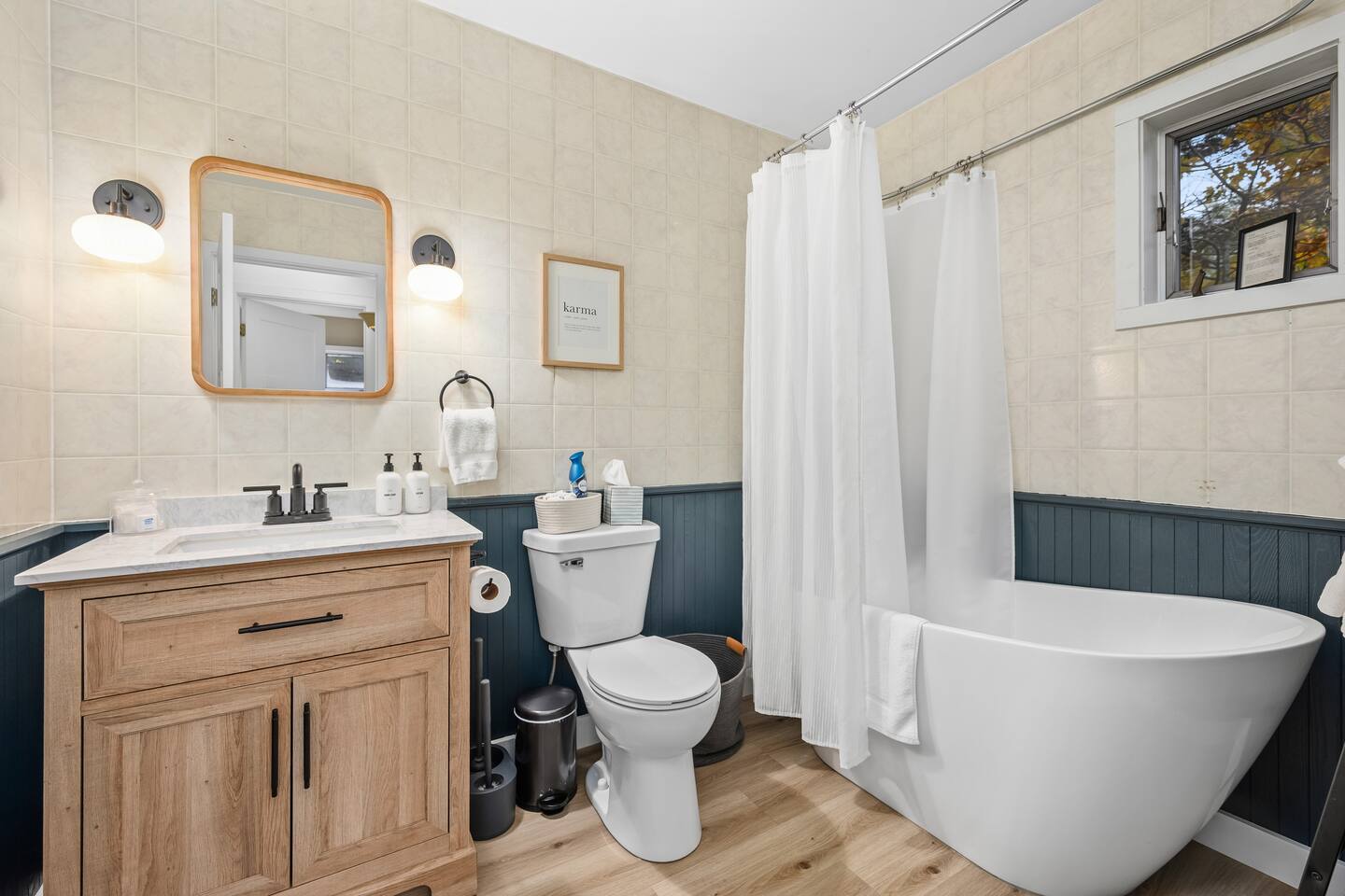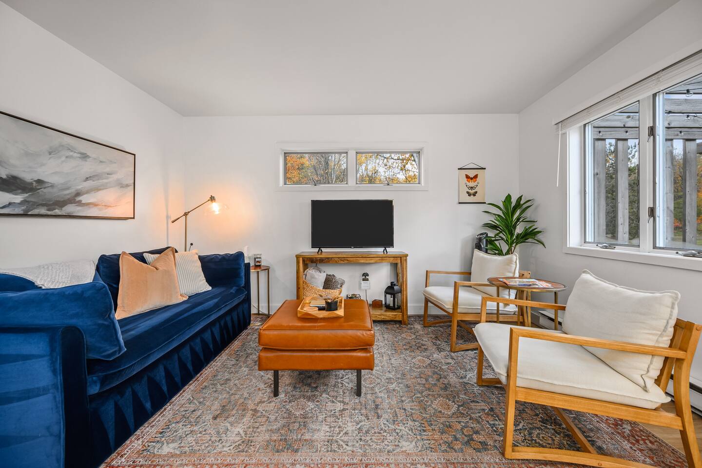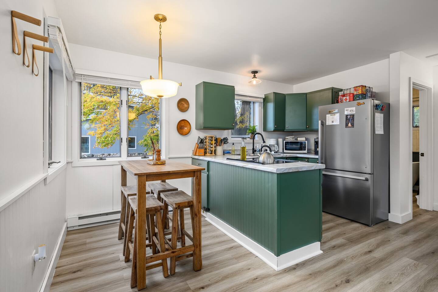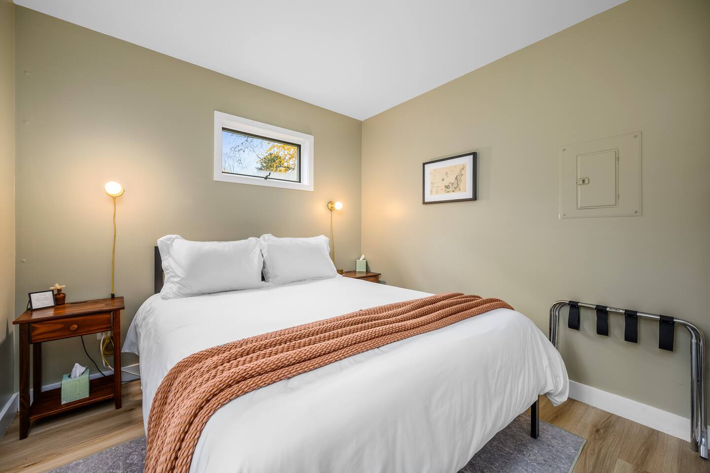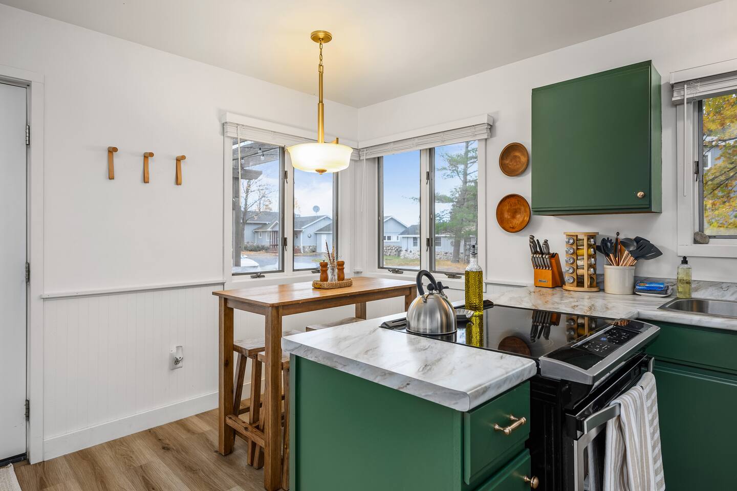 The Little Dipper is a tiny haven nestled on the shores of Grand Traverse Bay. When you arrive, there is parking available for 2 cars out front. The front door will lead you into the main open floor plan living area of this cottage. The kitchen is newly renovated and fully stocked with pots and pans, dishes, utensils, spices, and small appliances for cooking meals. In the living room, there is a pull-out couch, as well as seating for your whole group to watch the Roku TV. In the back of the unit, you will find the bedroom and bathroom. The bedroom has a queen size bed, nightstands, and a dresser. The bathroom is newly renovated and includes a full soaker tub and shower. Linens, towels, shampoo, conditioner, body wash and paper products are included in your stay. In addition to the condo, you have access to 400 feet of shared lakefrontage and beach. The shoreline can be a little rocky, so bring your water shoes to get the most enjoyment out of the bay. We can also help you set up rentals for water sports gear such as paddle boards and kayaks.