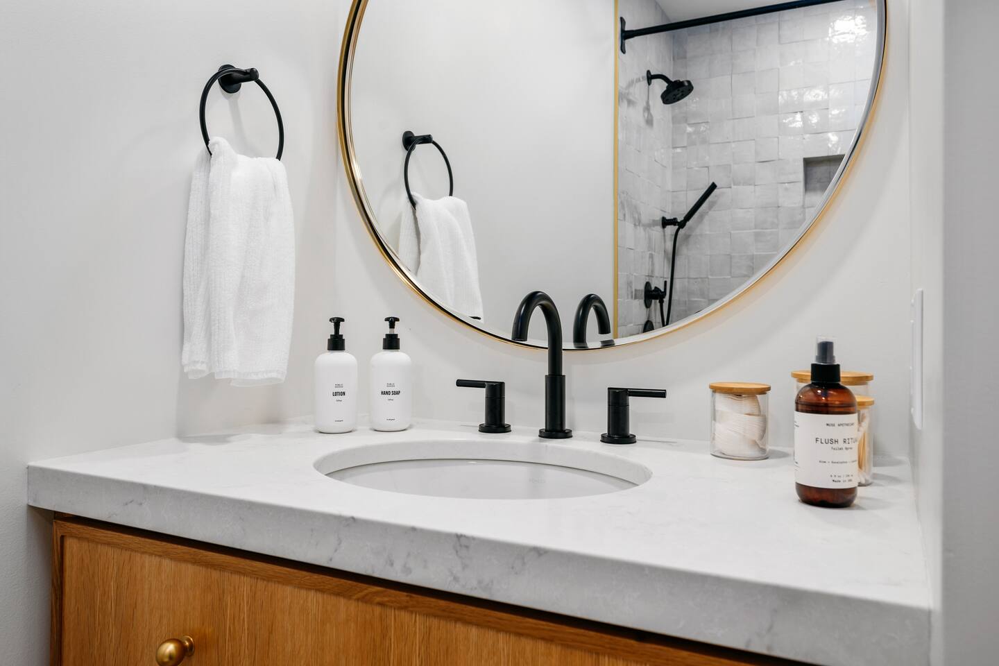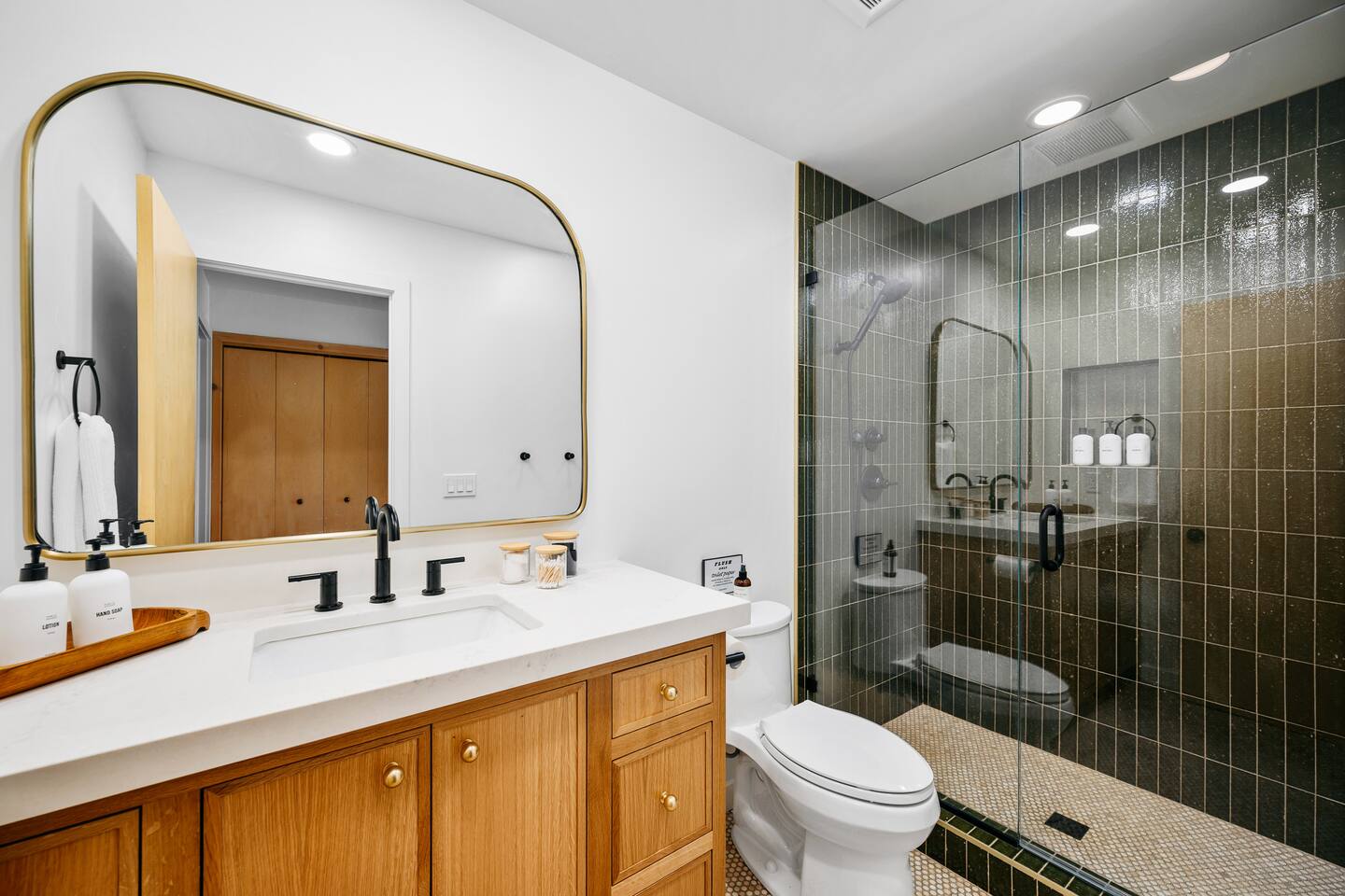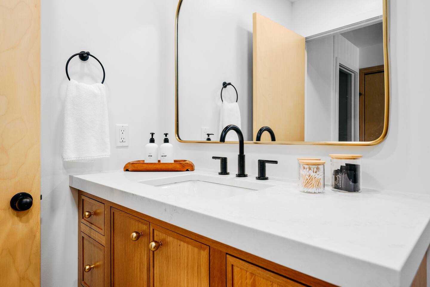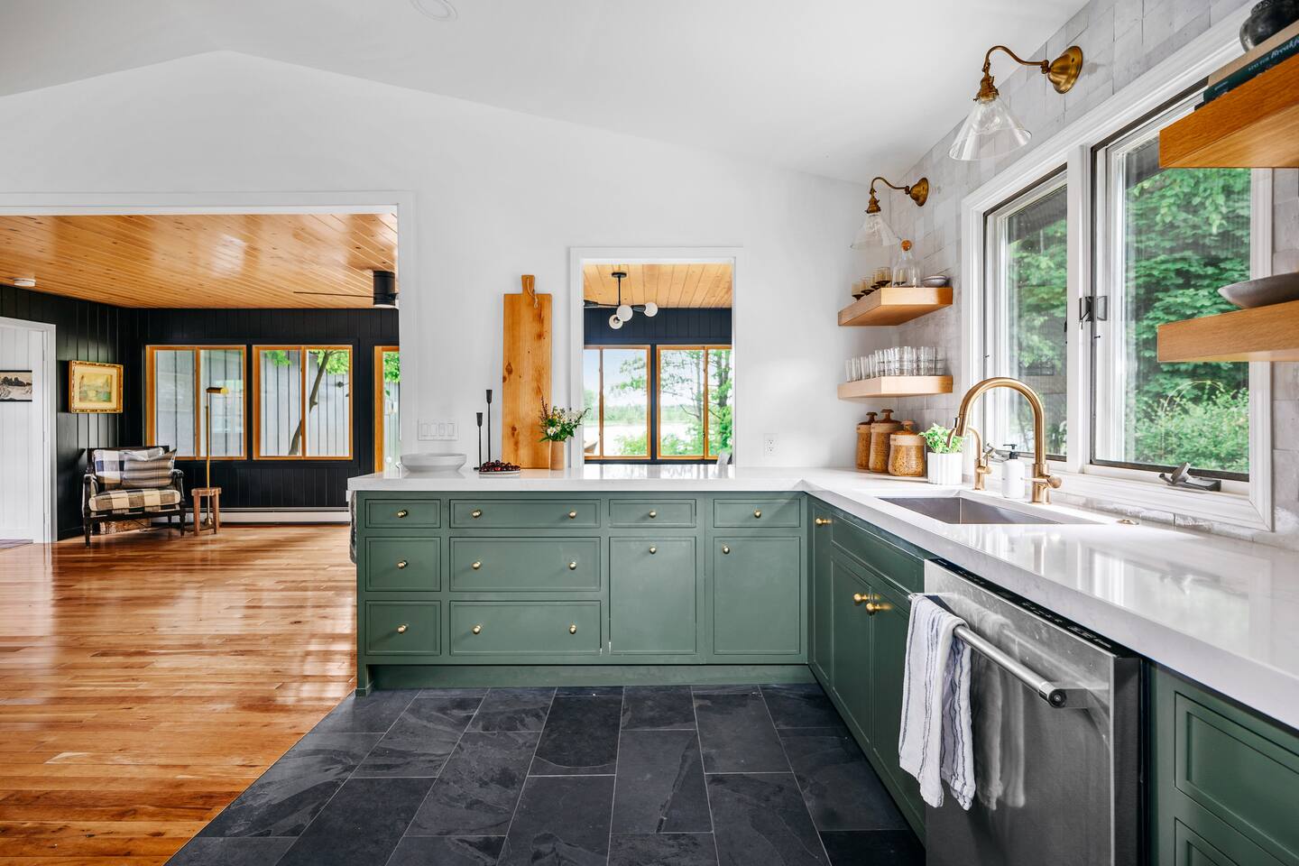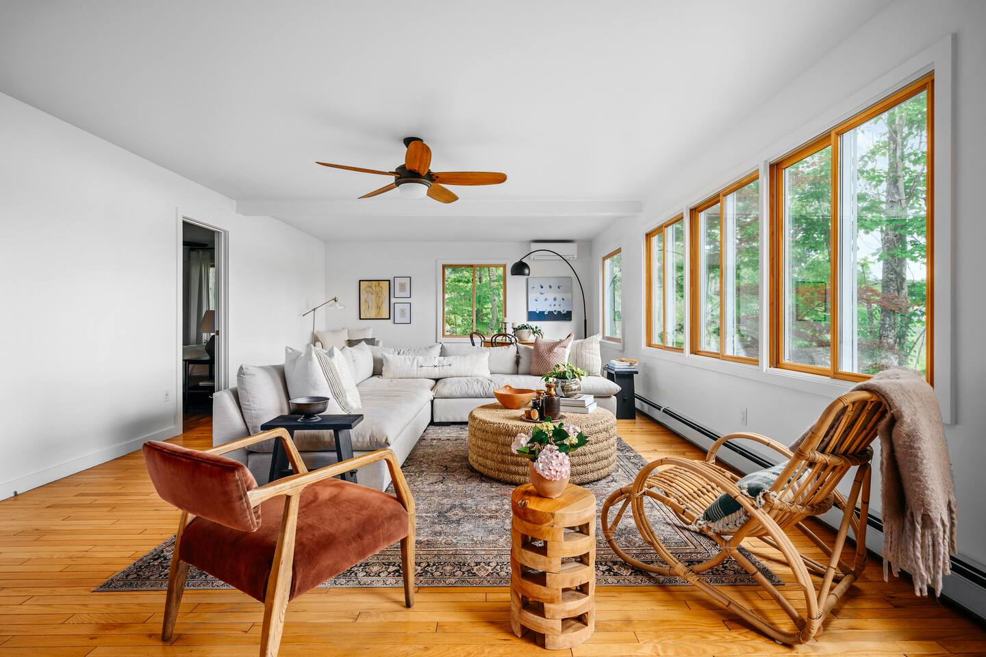 Stillwater Cottage is a 3 bed, 3 bath home that was recently renovated in 2023 to bring you a modern camp vibe with excellent amenities. Enjoy 2 living rooms, a full chef's kitchen, and access to both Mougey Lake and Omena Bay. Stillwater is conveniently broken into two wings. In the first, you will find an open floor plan kitchen, dining, and living area to gather your group. The kitchen was professionally designed and stocked to cook and serve beautiful meals while you travel. There is a gas fireplace to enjoy while you play games or eat on the dining table that seats 6. There are also 2 bedrooms and 2 bathrooms located in this wing. Each bed is queen-sized fitted with quality linens on a comfortable new mattress. The back bedroom is outfitted with a desk for working on the go and the bathroom is ensuite. The second wing of the home contains the main living room and the third bedroom and bathroom. The hall closets leading to this wing are well stocked with games, books, toys, and water essentials. The living room gives you an excellent view of the lake while enjoying the TV or second gas fireplace. This bedroom also has a queen bed and ample closet space. Outside the home, there is a deck with seating to enjoy a meal outside. A few steps off the deck and down to the lake a firepit is available for marshmallow roasting under the stars. The house has 200 feet of Mougey Lake frontage. Mougey lake is a no wake lake great for paddle boarding, kayaking, fishing, or swimming. One block east of the home there is also public access to Omena Bay to enjoy the big lake water.